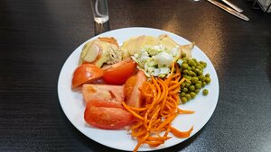 Кафе «Капри» предлагает своим гостям разнообразное меню, которое включает в себя завтраки, обеды и ужины по системе «шведский стол». Гостям нравится домашняя еда, такая как сырники, запеканки, сосиски, яйца, каши и омлеты, а также свежие овощи и фрукты. Кроме того, посетители отмечают, что в кафе чисто и уютно, а персонал вежлив и приветлив.