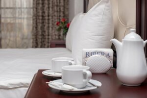 Отель Ribera Resort & SPA расположен на первой береговой линии, всего в километре от исторического центра Евпатории. Комплекс работает по системе «всё включено», здесь 127 номеров с видом на море или озеро. На территории отеля есть крытый бассейн с панорамным видом на море, а также открытый бассейн и зона отдыха. Кроме того, гости могут посетить банный комплекс, который включает в себя финскую и русскую бани, а также хаммам.