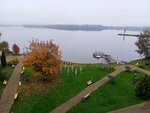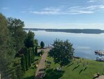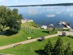 Хороший отель на берегу Валдайского озера. Навигатор приводит к небольшой парковке и металлической ограде; для того, чтобы попасть в отель, нужно зайти в здание ресторана, что правее парковки, сказать охраннику, что на заселение, он проводит через холл ресторана на внутреннюю территорию к зданию самого отеля. Парковка на территории отеля платная, за оградой - соответственно, можете оставить машину бесплатно. Отель представлен 5-хэтажным корпусом, в котором на данный момент полностью обновлен только 5-ый этаж, остальные этажи - подустаревшие и ждут своей очереди на реновацию. Лифт есть. Номер - брали двухкомнатный Люкс №506 на 5-м этаже с видом на озеро, остались очень довольны. Места в номере на троих достаточно, чистый, есть двухспальная кровать и приличный раскладной диван. Есть длинная неширокая застекленная лоджия со входом из гостиной, противомоскитные сетки имеются. Обстановка тихая, спокойная, вид с лоджии на озеро великолепный. Мебель и сантехника в хорошем состоянии. Кровати и подушки удобные (спать комфортно), вместительные шкаф и тумбочки, есть кондиционер, телевизоры, холодильник и чайная станция. Ежедневно пополняются запасы питьевой воды по 0,5 на человека. Освещение в номере достаточное. Санузел совместный, с душевой, есть нормальные фен и полотенцесушитель. Тапочки, халаты и разнообразные полотенца в достаточных количествах - есть. WiFi в номере ловит нормально. В номере чисто, качество уборки на высоте. Звукоизоляция хорошая, соседей не слышно. Питание - на втором этаже в ресторане, для 3* вполне себе приличное, всегда можно найти блюдо на любой вкус, так что вопросов нет. Завтрак: 7:30 - 10:00 Обед: 13:30 - 15:00 Ужин: 18:30 - 20:00 SPA-комплекса, бассейна, тренажерного зала в отеле нет. Территория самого отеля небольшая (практически полностью видна на фотографии, за исключением спортивной площадки и беседки, на которую упало дерево во время урагана, потому не стал фотографировать), с территории отеля можно попасть через калитку в прилегающий Соловьевский парк, но там, кроме макета Эйфелевой башни и туристов с палатками, ничего особенного нет. По поводу купания - собственного пляжа нет (что очень жаль), прибрежная полоса оборудована шезлонгами, но дно - мелководье, всё заросшее водорослями. По поводу рыбалки - с берега ловить невозможно из-за водорослей, как вариант - только если арендовать лодку. Есть прокат лодок, сапов, катамаранов и водных велосипедов. До Иверского монастыря - 12 минут на машине. Персонал отеля - очень приятные люди, общаются позитивно. В целом, отель понравился - повторюсь, для 3-х звезд всё вполне себе хорошо, проживанием остались довольны, рекомендуем!
