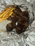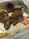 За стейк ставлю 1!!!! Уберите фотографии стейка из меню, это не соответствует действительности!!! А теперь посмотрите на реальный шмоть , который назвали стейком . Это кусок мяса с жилами , которые не жуются и жиром ,который мерзкий и невкусный , как в мясе для приготовления супов из говядины . В стейке не может быть таких жил !!! И если есть жирок, то он очень вкусный !! А не это ! Я в шоке .. Это что за мясо из супового набора …