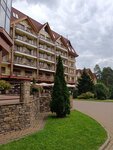 Отель для конференций и для однодневного туристического отдыха идеален. Не подходит для более длительного отдыха. Объясню почему. Все просто. Там нечего делать. В отеле нет уличного бассейна, в котором можно было бы купаться и возле него загорать. А внутренний бассейн не впечатляет. Вода 27 градусов (классическая), дорожки для плавания. Ну это откровенно скучно. Есть несколько саун. Сауна с гималайской солью и сауна с камнями холодные, не больше 30 градусов. Хамам маленький, но милый. Несколько горячих саун с еловыми ветками и с эвкалиптом. Короче говоря, вы не будете проводить в водном комплексе даже несколько часов, делать там нечего. Территория большая, красивая, ухоженная. Есть велопрокат и велодорожки. По периметру забора огромное количество табличек с высказываниями знаменитых людей. Ходи и просвещайся. Есть беседки для жарки шашлыков. Через территорию протекает речка. Бродят утки. Есть мини-ферма. Овцы, козы, лисы, нутрии, птицы. Можно покормить. Сады разбиты, с фонтанчиками, арками, скамейками. Очень красиво. Еды много, очень вкусно. В ресторане чисто. Алкоголь разный, включены коктейли. Номера чистые, уютные, отремонтированные. Персонал вежлив и незаметен. Есть бильярд, боулинг, спортивные корты. Хорошая большая детская площадка. Для маленьких и для постарше. Анимация проводит мастер-классы, зарядки, квесты, мафию. Сплошные конференции в отеле. Простых туристов немного. Нам хватило одного дня более чем. 10 раз обошли и объехали территорию, все поделали, поиграли в бильярд, один раз посетили бассейн. В бассейн возвращаться не хочется, повторюсь, там скучно. Поэтому, для однодневного посещения очень рекомендую данный отель. Для более длительного отдыха, нет.