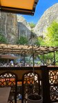 Приехали в данный ресторан по рекомендации и не пожалели! Совершенно удивительное место , колоритное! Сидя за столом, открывается потрясающий вид на скалы , на водопад - просто услада для глаз ! Под крышей ресторана стоит установка , которая орошает водой , спасает от жары отлично , считаю это тоже большим плюсом! Встретили приветливо, официант быстро принёс меню , быстро принял заказ, поясняя, подсказывая .Пока ждали блюда, ещё пара официантов поинтересовались приняли ли у нас заказ . Подача быстрая , заказывали лимонад 1 л, 3 салата с баклажаном карамелизированным, лагман, манты, баранина тушеная и их мини пельмешки с бульоном, две лепёшки. Вышло 3150, считаю, что очень демократично. Замечание по лагману есть , слишком много болгарского перца, перебивает вкус самого лагмана , манты на 8 из 10 , бывало и лучше. Баранина нежнейшая , не пересолено , для меня это очень важно, подается с картофелем .Маленькие пельмешки это в основном тесто , мяса в полгорошины)) но впечатление это не испортило, ребёнок с удовольствием съел эти пельмешки и выпил весь бульон, а он тот ещё привиреда) салат с баклажаном ну очень вкусный! Ах да, лепёшка свежая вкусная , взяли одну домой. Буду рекомендовать друзьям и обязательно как-нибудь вернёмся сами, интересно попробовать другие блюда !