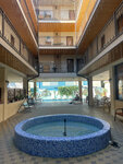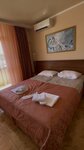 Были здесь с 18 по 28 августа 2025. Брали 2 х комнатный номер с балконом. Завтраки и обеды. Есть платная Покровка - 300 р на улице и 500 р под крышей.В номере при заселении чисто. По одному гелю и шампуню на человека + одноразовые тапочки. По 2 полотенца. Кровати удобные, подушки мягкие, белье чистое. Сантехника исправна, но есть недочеты (она старая в налете, течет полотенцесушитель) За 10 дней в номере 2 раза помыли полы и сменили полотенца. На 7 день поменяли постельное белье. Когда заселились, очень хотели принять душ с дороги, но воды не оказалась…. Ушли на море, вечером воду включили только после того, как муж сходил пожаловаться на ресепшен ( администратор молодец, отреагировала оперативно) Персонал приветливый и доброжелательный. Телевизор показывает 3-4 канала. Пульт разбит и рассыпается в руках. Еда съедобная, но однообразная. Выпечки нет, на завтрак были покупные пряники иногда печенки или баранки. В обед чай попить совсем не с чем. Из фруктов - яблоки иногда апельсины, один раз были консервированные ананасы.Если опаздывали на обед, то его можно было заменить на ужин, заранее предупредив администратора ( очень удобно).Обещанного фонтана в холле нет(, бассейн если и подогревается то видимо только от солнца.Вечером плавать в нем холодно. Подсветка тоже не работает. Возле бассейна травмоопасные дыры. По вечерам в отеле тоска…. Есть теннисный стол и маленький детский уголок… детям особо заняться не чем. 2 раза в неделю анимация по часу примерно. Вай фай не работает. До моря 5 мин пешком, но до хорошего пляжа мин 20. До магнита и аптеки минут 10. В целом отель не плохой, особенно если приехать сюда на пару дней. Если оставаться дольше, то становится очень скучно. Хотелось бы побольше развлечений и занятий хотя бы для детей.( можно батут поставить, вечером хотя бы диско вечера для детей организовывать) Мы в принципе семья не привередливая, но возвращаться сюда желания нет. Очень двоякое впечатление…