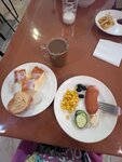 Отдыхали несколько дней в конце августа. Все понравилось До моря 5 минут неспешным шагом Питание было 3х- разовое Завтрак шведский стол, обед и ужин - комплексное меню Ничего необычного, обычная столовая еда, но вкусно, всего хватало Единственный минус - много битой посуды, следует ее заменить Уборка в номере тоже под вопросом, за несколько дней у нас ни разу не убрали мусор и не обновили мыльные принадлежности На каждом этаже есть горячая питьевая вода, есть микроволновая печь, гладильные доски На территории есть детский угол, но тоже требует уже ремонта Бассейн теплый