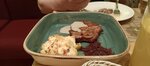 Решили зайти поужинать. Интерьер уютный, температура в помещении комфортная, между столами стоят вешалки для верхней одежды. Вдоль стен стоят удобные диванчики. Меню понятное, разнообразное. Девушка приняла заказ и спросила как подавать, потому что блюда были разные. Попросили всё вместе. Принесли напитки. Ждали не долго, минут двадцать. Всё свежее, горячее, вкусное. Подача блюд понравилась. Хорошо посидели, вкусно покушали. Можно зайти ещё раз.