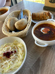Внутри достаточно чисто и уютно, блюда подают быстро. Солянка на троечку, булочка с вишней - много теста, мало начинки. И 2 волоса в одной порции пюре конечно сильное заявление. Салаты норм.