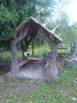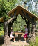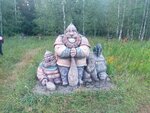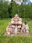 Место, с множеством смешных скульптур из сказок и истории России. Взрослые, как дети... Забавно. Но, трава не скошенной, дорожки не протоптаны, учитывая ночной ливень, можно представить сто было с нашими ногами... В принципе, это не помешало нам насладиться детством...
