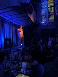 Небольшой зал, очень удобный предзаказ еды по меню с приложением. Быстрое и качественное обслуживание. Наконец-то нашла "своего" комика , к которому с огромным удовольствием буду приходить на концерты. Роман Косицын, харизматичный артист, болеет за Спартак, заботливый отец, поэтому очень близок по жизни для тех кому далеко за 40+. Было весело как на свадьбе, тамада хороший и конкурсы весёлые. Сыну тоже понравилось. Мадам с детской не реализованной мечтой стать "лётчиком истребителя" по гороскопу Водолей, пыталась перетянуть внимание на себя...но этот диалог с Романом развеселил всех ещё больше. Из минусов, очень маленький гардероб и начало концерта было с большим опозданием. Поэтому когда вышел на разогрев, непонятный персонаж, который полчаса пытался нас развлечь, появились вопросики к организаторам и полному отсутствию информации по заявленному артисту на афише.