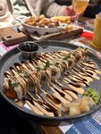Очень понравился ресторан. Очень вкусные роллы,но остренькие. Мидии запечённые 4 сыра обалденные Вкуснейший салат с говядиной. Рекомендую к посещению Особенно классно перед концертом в Ледовом дворце)