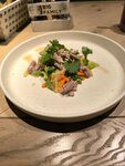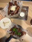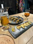 Начну с плюсов-отличное пиво, сопровождающееся интересными фактами о нём милейшей Зарины. Ролл с угрём на 5ку, мидии под трюфельным соусом тоже. Мидии "4 сыра" не зашли, сыра слишком много, за ним мидий вообще "не слышно". Гренки норм, на мой вкус излише масляные.Стейк из мраморной говяжьей вырезки по просьбе прожарки медиум передержан. Копченые северные креветки по вкусу просто скумбрия 😁Давайте к ним перчатки одноразовые, чтобы чистить, иначе потом не отмыться) На входе с веранды в зал грязно, земля кусками,хотя погода была сухая.Занавески на веранде чистые только на уровне глаз, под столом просто черные. Возможно, недобросовестные гости протирают ими обувь👢. Были на Большевиков