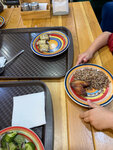 Неоднозначное впечатление осталось от столовой. Чисто, красиво, все блюда по одной цене, кроме черных ценников Суп-лапша 100р, очень вкусная. Пицца 150 за кусочек, тоже понравилась. Брали ещё форель запеченную, стоит 240 за 100г, вытянула на 410р. Видимо лежала с утра, заветрилась, и пахла тиной. Второй раз точно не возьму. В зале есть микроволновка, но это бы не спасло, было невкусно. Такие блюда надо брать сразу с мангала. В целом впечатление хорошее. Персонал приветливый, в зале чисто, сиденья удобные. Туалет чистый, все исправно