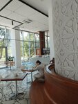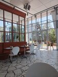 Очень эстетично оформлено пространство, признаюсь, именно это меня привело сюда. Светлое, много воздуха, очень интересные интерьерные решения, дерево в оформлении. Большое количество посадочных мест, огромные стеклянные окна, много света, интерьерные решения такие, что создано воздушно, прозрачно, легко. Приветливый внимательный персонал. Десерт мне не понравился. Пока я пробовала кофейную классику, бариста отвечает на вопросы о зерне. Кофейное зерно местных обжарщиков. Для меня слабовата зерно, будет другое зерно - Сварщица (Московские обжарщики, они превосходные) либо Столбовой, если хочется вести линию местных обжарщиков. Заменив столовые приборы на более эстетичные +10 баллов к впечатлению, комфорту, ощущению (что и есть составляющие эстетики) Признаюсь честно, что пока оформление для меня сильнее содержания, но буду пробовать еще ) тем более вкус у каждого очень индивидуален. Музыка играла громко, для меня значительный минус Оформление места очень порадовало.
