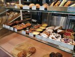 Отличное заведение недалеко от метро. Много места, большой выбор вкусностей. Не знаешь, на чем и остановиться. Попробовали вензель с малиной, хит этого сезона. Вкусно, много начинки, хрустящее тесто. Цены достаточно высокие. Кофе, как всегда хорош!