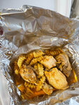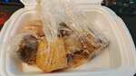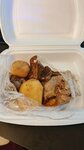 Заказал самовывоз «Жаркое из курицы» и «манты». Вместо сочной курицы тушеной с овощами положили отварную курицу, залили ее сверху старым жииирным маслом + засохшее фри. Я вообще другое блюдо покупала. Где овощи? Где тушеная курица? Курица вообще сухая не свежая. Манты точно не свежие! Как минимум вчерашние. Мясо не жуется, темное, и опять таки вонь старого использованного масла. Ни сметаны, ни зелени сверху, просто как собаке наложили! Естественно, такую вонь с б/у маслом есть невозможно, мы выкинули как только вскрыли! Обязательно напишем в Роспотребнадзор, если не вернут деньги! Зачем так травить людей?! Еще за такую цену!