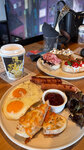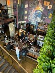 Выбор еды хороший, что попробовали - вкусно Интерьер очень классный, место на любой выбор - можно даже посидеть на полу. На втором этаже понравились столы у окна Кофе (фильтр) обычный, плохого точно нечего сказать А вот обслуживание странное. Девушка приняла заказ, принесли довольно быстро. Чтобы попросить счет нашу официантку уже найти не удалось. Нашли другую, она походила по этажу, сказала, что ее терминал не работает, оплатить можно внизу на главной кассе. Там уже была очередь человека три. Ребят вроде много работает в зале, но поживее бы)