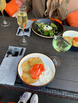 Прогуливались по Невскому,решили зайти перекусить. Очень приятное заведение,очаровательная девушка официант- Карина вкусные коктейли!🤍 Салат со свеклой и драники с лососем 🔥 Красивый вид,прекрасная веранда. Обязательно вернёмся. Спасибо✨