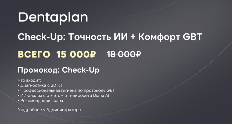 Check-Up: Точность ИИ и Комфорт GBT в Цифровой стоматологии Dentaplan в Санкт-Петербурге В Цифровой стоматологии Dentaplan мы предлагаем ун...