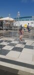 Место само то, что необходимо для детишек и для тех кто не умеет плавать- ЛИМАН. Пляж расположен напротив Центрального. На подходе к пляжу ларьки и скверик с фонтанчиками, лавочки чтоб передохнуть. На самом пляже переодевалки и оборудована обвывка ног. Вода той же температуры что и в лимане. Мелкий ракушечник под ногами по всей территории. На пляже, как и везде, водные развлечения в широком спектре. На входе уютное красивое кафе. По всему побережью лимана оочень мелко. Зайдя на 200 метров в глубь вам воды и по пояс не будет. Потому здесь и расположен детский пляж. Попрыгать в воде, поплескаться и позагорать для детишек идеальное место. Внучке понравилось это местечко. А ещё это место порадовало зеленью и цветами на подходе к пляжу.