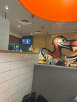 Не смотря на постоянный поток людей довольно быстро сделали заказ (не засекала время, где-то пол часа +- 5 напитков и 5 мини пицц), правда что-то напутали с напитками - американо был чёрный, хотя выбирали молоко к нему + на стакане написано было КАМ, но молока не было, молочный коктейль один из двух пришлось ждать ещё минут 10 после готовности заказа, девушка сказала минуты 2 подождать, но было явно дольше, видимо кому-то другому отдали наш, а нам дали мокачино, который мы не заказывали, пыталась объяснить сразу, что изначально нам дают, что-то не то, что-то лишнее и одного нет, мокачино так у нас и остался, про него ни кто не вспомнил, будем считать его компенсацией за неудобства и занижать рейтинг не буду, человеческий фактор в такой движухе имеет место быть, поток один за одним, суббота. Заказ с первого раза не получилось сделать, терминал который сразу у входа выдавал ошибку при оформлении, перезаказала на маленьком у кухни, там всё прошло. Код от туалета на чеке, это что-то новое для нас, после получения заказа чека на руках уже нет, если не запомнили код, то в туалет сходить потом будет проблемкой 😁 + есть розетка у стола. Пицца вкусная, особенно с креветками понравилась 😊
