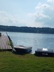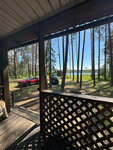 Отдыхали семьей. Арендовали на сутки. Домики аккуратные с открытой верандой на которой в теплую погоду приятно посидеть вечерком за чашекой/кружечкой/рюмочкой.... Почти все номера были заняты, и на территории при этом было тихо, никто не шумел, отдыхающие подобрались спокойные, в основном сдетьми либо пары. Внутри домиков довольно уютно: отдельные спальные комнаты и большая гостиная совмещенная скухней. Вода подогревается от бойлера. На более длительный срок тоже можно вполне оставаться в любое время года(осенью-зимой включают электротены). Но самое главное ради чего мы выбрали это место, конечно, природа. База находится в глубине леса на берегу озера. Озеро неглубокое, потому тихое и без волн, приятно просто посидеть на берегу либо на мостке с удочкой или без, не важно. Отличный вариант для семейного отдыха в дали от шума.