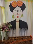 Уютное место с необычным интерьером) красиво нарисована Фрида Кало во всю стену. Вкусный кофе и снеки к нему) особенно вкусны трубочки с кедровыми орешками 👍