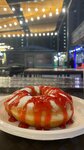 Лютые пончики, горяченькие и вкуснючие. Свою цену отрабатывают на 250% Беру всегда обычный пончик с малиновым топпингом и каждый раз ем как впервые. Сами они крупненькие и пышные, снаружи пока горячие хрустят. Банановый топпинг ооооочень сладкий если что, прям очень очень. Однозначно рекомендую попробовать даже самый просто пончик посыпанный сахарной пудрой.