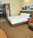 Хороший отель. Все стандарты Хэмптон от Хилтона с лихвой соблюдены. Ну, может, рыбы на завтрак не было. Но мяса было разного в избытке-может национальная особенность. Ресторана, как и во всех Хэмптонах, нет, но в лобби баре можно и пообедать и поужинать. Меню не большое, но голодными не останетесь. А через дорогу есть хорошее аутентичное кафе национальной кухни. Отель не совсем в центре, но до центра(арт квадрат) 15-20 минут прогулочным шагом, по сути, по прямой не петляя. Отель рекомендую