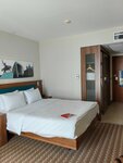 Нормальный сетевой отель. Отмечено, что он 3*, но я дала бы больше (в других регионах видела и 4* гораздо хуже). В номере чисто, номер просторный, матрас удобный, умеренной жесткости. Белье ничем не пахнет, даже моющими средствами - очень важно для меня. В номере бутылки воды и чайный набор. Все необходимое есть. На окнах шторы блэкаут (для лета самое то, если вы не фанат подъемов с рассветом). Напротив, через дорогу, куча заведений на любой кошелек. Завтраки нормальные, выбрать что-то под свой тип питания можно. Кофе не очень, но можно найти в соседних заведениях. В целом ок. От аэропорта вечером доехали быстро.