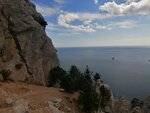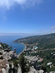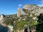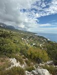 Открываются красивые виды на море, посёлки Симеиз и Кацивели.