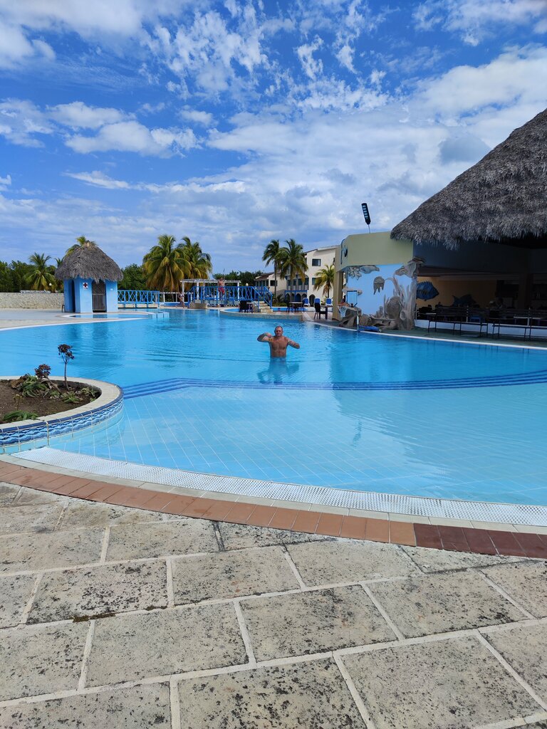 Отель 4 звёздный. Обычный. Всё включено. В общем нормально для Кубы. Не Египет конечно. Но на Кубу не за сервисом едут. Ром есть, еда около дела, соки , воды, газировки, десерты, мороженое. бассейн большой, даже не один. отель в первой береговой линии , только мангровые заросли перейти. Океан в первые пару дней был неспокойным, потом вообще класс. А в последние дни совсем без волн. Солнце очень сильно греет 🔥.