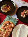 c мини-кальмаром, креветками, томатами черри, тунцом, вонголе, мидиями и маленькой каракатицей