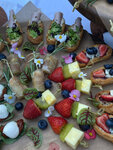 - круассаны с лососем - круассаны с салями милано - конверты с фисташкой - конверты с лососем - конверты с милано - прошутто крудо - коппа - мортаделла - горгондзола - грана - пекорино сардо - гриссини - вяленые томаты - артишок - оливки - черри ...