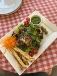 Колеблюсь, какую поставить оценку: очень понравилась концепция заведения, но крайне выборочно понравились блюда. Впрочем, это всегда дело вкуса, так что будет пять) Уютный ресторанчик-траттория. Приятное обслуживание, много разных залов — с мотоциклом, с Фиатом, детям есть что поразглядывать. До 21:00 играла живая музыка (пианист). Есть милая крошечная веранда на 2 столика: удобно, если у вас большая компания, а на улице жара. Меню очень простое, без картинок, нет «попсовых» и привычных в России блюд типа карбонары и цезаря. Действительно сильно похоже на настоящий итальянский ресторанчик (бывали — знаем😁). Все эти горькие зеленые салаты, своеобразная паста… Безоговорочно понравились только лимонад и пицца 🍕 в последнем зале — огромная витрина с кучей видов мороженого. Можно купить с собой или заказать у своего официанта. Вкусы очень натуральные (брали клубнику и горький шоколад). Средняя ценовая категория, не бюджет. В общем-то, классное место. Посадка была полная. Надо пробовать разные блюда, как повезет☺️