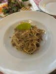 Покатавшись на кораблике, пока позволяет погода в Санкт-Петербурге, проголодавшиеся #фудикотики поехали в проверенное место на ужин в кафе Италия, ул. Бакунина д. 5. Мы не первый раз здесь, опытные, знаем размеры порций, поэтому взяли один салат на двоих и две пасты. - Insalata vitello - 1200₽ - настоящая Итальянская гора травы и много мяса, вкусно, сытно. Классно, что соус подается отдельно - можно добавлять по своему вкусу. - Паста Tonno e cipolla - 850₽, Выбор Сергея - это не паста с тунцом, это МНОГО тунца с чуть-чуть пастой 😜Я очень люблю тунца, в том числе и консервированного, поэтому яркий насыщенный вкус, правильно сваренная паста, все что мне нужно для счастья! - Паста Gamberi e zucchini - 950₽, для Кати - настоящая по-итальянски домашняя порция, щедро наполненная креветками различных размеров, паста и цуккини «аль денте», лёгкий соус с цитрусовой ноткой - очень вкусно и очень сытно! Это место однозначно входит в наш топ-лист - можно прийти вдвоем, с детьми, с друзьями - всем будет вкусно! Дети, кстати, однозначно оценят джелато собственного приготовления, и захотят перепробовать все сорта, будьте к этому готовы 🤗 И в целом, вся атмосфера заведения, начиная от интерьера, наполненного типичными итальянскими деталями - тут и Vespa и Fiat 500, заканчивая музыкальным оформлением и дружелюбностью персонала - это то, что приводит нас сюда снова и снова, и каждый раз понимаем, что сделали правильный выбор 🇮🇹❤️