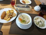 Еда вкусная,похожа на домашнюю. Порции большие. 2х блюд более чем достаточно для взрослого мужчины. Из минусов - если персонал видит большой поток клиентов,то у них резко заканчиваются комплексные обеды, хотя предыдущие посетители заказывали их без проблем