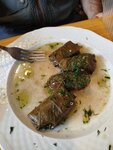 Кафе, конечно, не на 5, но поесть можно. Была ближайшая точка для нас с нормальным рейтингом. Остановились. Брали харчо, лагман, селёдку под шубой, долму, жульен с курицей. Селёдка приличная, костей нет, порция салата пойдет на двоих точно, иначе больше ничего не захочется)) жульен, как в столовой, но пойдет. Лагман был очень хороший, харчо было бы тоже ничего, с большим мягким куском говядины, но сильно пересолено. Долма- то блюдо,которое оказалось наиболее удачным. Запивали все чаем с ягодами, чаю прям 5+. Еду приносят быстро, не остывшую. Хамят в меру для придорожного заведения🤣 Меню очень обширное, мы пытались уточнить, какие позиции, например, из супов, могут посоветовать, но ответ от официантки был довольно презрительным: "Вам рассказать, что лично мне нравится? У нас все вкусное." Хотя совершенно очевидно, что при таком количестве блюд, сохранить одинаковое качество у всего задача прям таки со звёздочкой, что и подтвердила дегустация)) Однако, изжоги от еды не было, плохо тоже. Поесть на трассе с семьёй можно. Наш заказ обошёлся около 3000р.