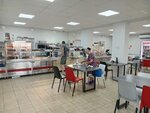 Из плюсов: - есть туалет, платный- 30 рублей - чисто - можно оплатить картой - есть кофе из автомата Из минусов: - Еда несвежая( взяла салат селёдка под шубой, порция крохотная, пахло прогорким маслом, есть не стала) - персоналу вообще на клиентов все равно - выпечка также не очень вкусная
