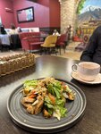 Очень понравилась здесь кухня, все сытно, с мясом, прекрасно приготовлено. Заказали салат, два супа, хачапури и пирог с мясом, пирог уехал с нами обратно в Новосибирск, показалось много:) чай - травяной - пах достаточно необычно, но на вкус оказался приятный; обслуживание также неплохое