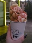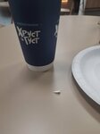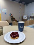 Зашла посмотреть ради интереса) интерьер понравился: чисто, просторно. Взяла кофе, леденец мелкой и пончик с собой для дочки. На витрине был с фиолетовой глазурью. Придя домой сразу не посмотрела. А потом открыла и расстроилась: выглядит не первой свежести и непонятно вообще сколько он бедный и скукоженный лежал у них. Пойду возвращать. Кофе норм. Но впечатление испортили((