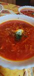 Самый вкусный, что я пробовала куриный суп с домашней лапшой 170р. Курицы и лапши прямо много, на фото это я уже съела часть, а так он еще гуще )) Борщ 190р брал муж и ребенок - тоже вкусные и густые. Беляш 70р жаль взяли один, потом их быстро разобрали, хотели взять в дорогу. Рекомендую от души! Возле кафе много фур и машин, пользуются спросом. Есть вайфай. Единственный минус - туалет внутри был закрыт с листком, что не работает, а это существенно . Поэтому четвёрка.