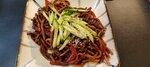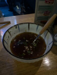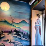 Очень странное место по многим параметрам. Сразу скажу, официант был очень вежливым, внимательным, ненавязчивым, успевал за всеми,к нему никаких претензий, даже наоборот. Я заказала том-ям средней остроты и древесные грибы. Принесли довольно быстро, порция супа крупная. Для чувствительных или не привыкших к острому это покажется слишком. На мой взгляд - немного бы поменьше для среднего уровня. Сам суп средний на вкус, но морепродуктов не пожалели. Древесные грибы совсем не понравились здесь. Оформление тоже странное-иероглифы корейские,а изображена японская девушка, блюда -азиатский микс.