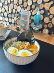 Меню большое. Заказали сырный рамен и пельмешки. Пока выбирали и ждали заказ, к повару всё кто-то приходил, затем и вовсе зашла женщина в верхней одежде в зону кухни, и начали беседовать там. И это как-то извините.. Вызвало у меня недоумение. Учитывая что в зале никого не было, подождали мы еду где-то минут 15. Сырный Рамен( или надругательство над блюдом) 560р - от рамена там только название. Яйцо не мариновано, просто полусырое было кинуто вниз желтком и этот супер неуважение)) куски курицы, охапка кукурузы и пророщенная фигня замиксованые в еле тёплой сливочной воде. Ни сыраности ни остринки. Кто едят настоящий рамен , это даже как еду не воспримут. Пельмешки молодой человек съел, сказал что вкусные, к ним был интересный соус. Официант красивый грамотный работник.