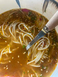 Заказали 1. Куксу горячий , почему то , вместо пшеничной лапши были макароны вермишель , что сильно удивило (на фото) 2. К пибимпабу вопросов нет, есть вопросы к бульону , а точнее к порции этого бульона , был налит в пиалку, по сравнению с кафе кимчи ту гоу, , в которой размер того же бульона в 10 раз больше. Понятно почему в кимчи ту гоу нет свободных мест, а здесь заполнено на треть 3. Корндог который взяли с собой был не готов, вы когда нибудь видели сырое тесто, есть его не стали. СВРОЕ ТЕСТО КАРЛ, Сначала поставил 3 звезды но после того как увидел корндог синих до 1. И все это чудо кулинарии за 1700 Еще Моти но их попробуем уже дома, т к желание написать отзыв оказалось сильнее.