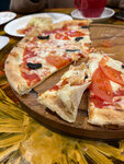 Мы приехали специально в Звенигород из Москвы чтобы поесть свою любимую римскую пиццу с сёмгой и креветками. Заказали сразу 60см за 1550р. ЦЕНА, конечно выросла, но мы же знаем, что эта пицца того стоит. И что нам принесли: огромный кусок хлеба, на котором пара кусочков рыбки и разрезанные пополам креветки, пара помидорок. Это больше походило на фокаччу. Хоть бы сыром и сливочным соусом залили, если на морепродуктах экономите!!!! Поели мы хлеба за 1550р, и больше сюда не приедем и друзьям не порекомендуем!!!! Посмотрите на фото как сейчас выглядит пицца за 1550р:))))))))) Также выкладываю фото как эта же пицца выглядела раньше, была дешевле и ради которой мы тащились в такую даль!!!!! Пишу этот отзыв для тех, кто в Луковке принимает решения!!!! Возможно, посмотрев на фото, Вы увидите разницу и вернёте пиццу в прежнее состояние!!!!