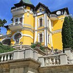 Недавно установленная бронзовая скульптура балерины Матильды Кшесинской, прожившей долгую, полную событиями жизнь. Предположительно она отдыхала на этой вилле в 1918 году. Покоится она рядом с мужем на кладбище Сент-Женевьв-де-Буа. Скромное надгробие из белого мрамора с православным крестом. Наверное, не совсем правильно устанавливать памятники историческим личностям без постамента или ограды. Они должны быть защищены от всеобщего фотографирования и потирания на успех и удачу. Для потирания, в шаговой доступности, имеется достаточное количество обезличенных бронзовых изваяний людей, животных и транспортных средств.