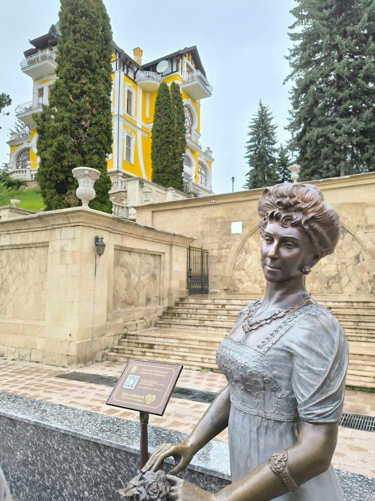 На проспекте Ленина в Кисловодске установлен памятник Матильде Кшесинской. Это одно из мест притяжения всех прогуливпбщихся по пешеходной улице города. Расположен памятник рядом с прекрасной дачей ярко желтого цвета. Мимо вы точно не пройдете. Кшесинская как живая, очень динамичная скульптура. А дача потрясает воображение. Необычная архитектура, красивые беседки переносят нас в прошлый век. Проспект Ленина стоит всем туристам посетить, вы получите приятные впечатления и будете потом вспоминать это место. Если пройдете до конца по проспекту, то можно подняться в парк к нижней станции и Долине Роз