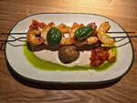 Ставлю тройку, только потому что место, действительно, симпатичное. Но работа сотрудников очень слабая. Сначала нас встретили на входе и сказали, что столов нет и ожидание 15-20 минут. Мы увидели , что освобождается столик и сами туда напросились. За нами тоже зашли люди и им объявили, что столов нет. Когда мы разместились , я поднялся наверх , чтобы посмотреть ресторан - 7 столов было свободно, потом спустился в подвал - там было 2 свободных стола. Когда уходили , хостес развернули компанию из 5 человек, которые хотели сесть - тоже объявили ожидание 15-20 минут, хотя наверху были места , о чем я сообщил менеджеру - они даже не знали, что на это сказать... Официант плохо знал меню. Спрашивал у него, есть ли в риете яйцо, он сказал, что нет (при чем, он ходил уточнять)- когда принес, я увидел в блюде кусочки яйца. Дополнительная проверка у поваров выявила, что в риет добавляют яйцо... Даже менеджер не подошёл по данному случаю к нам. В фокачче сначала официант сказал, что яйцо идёт, потом подумал и сказал, что точно не идёт - теперь я не уверен, что это была корректная информация. По стейку лосося с фасолью спрашивал у него, что входит - фасоль, лосось и сливочный соус - в итоге, были ещё шпинат ,вяленые томаты и грибы... Салат с бураттой был вкусным, нам понравилась пицца 4 сыра - тонкое вкусное тесто. Но желания возвращаться сюда нет, очень слабый сервис.