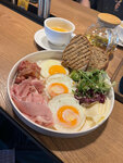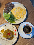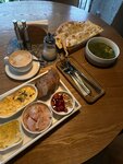 Я когда вкусно кушаю, все забываю, даже фотографировать. Диванчики, столики, зелень, открытая кухня - все понравилось. Были большой компанией, понравилось, что оплатить чек можно по куар коду самостоятельно. Отдельная благодарность нашему официанту, чтобы в шесть утра - расторопно и быстро обслужить, улыбаться 10 разным человекам - это дорогого стоит. Брали большой завтрак, но в процессе разъелись и попробовали не только кашку, но и десерты и оладьи. Все понравилось. Туалеты чистые, инет есть, зарядка для телефона тоже.