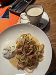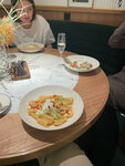 Плюс заведения-работает круглосуточно! Вежливый и приветливый персонал. Блюда не сказать,что супер вкусные , паста твёрдая, пресная(( ожидали вкуснее для итальянского ресторана. В помещение снизу прохладно, кондиционер не регулируется.