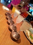 Прихожу в данное заведение не в первый раз. Хотелось бы оставить свои впечатления о данном месте в нескольких критиях (вкус, атмосфера, обслуживание). Вкус: Пицца - божественна. Тесто очень тоненькое, начинка вкуснейшая. Любое блюдо из меню выйдет на все 100 баллов Атмосфера: симпатичное и приятное место. Приятная музыка в тон к заведению. Так же атмосферности добавила разнообразная алкогольная карта. На фото представлен сет из настоек, что потрясли до самого мозга. Обслуживание: Наш сегодняшний вечер приукрасила официант София. Ее профессионализм повысил впечатление от места на все 100%.